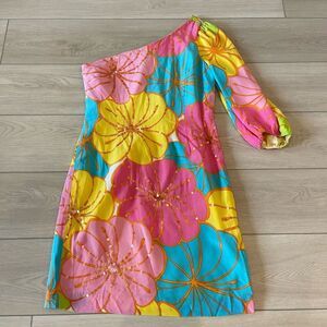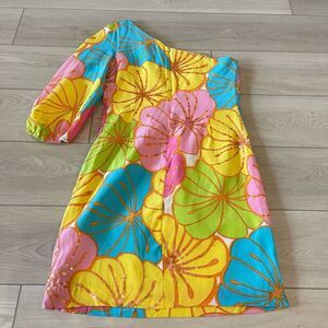 Lilly Pulitzer Women's Asymmetrical One Shoulder Mini Dress Floral 8 1005 Silk