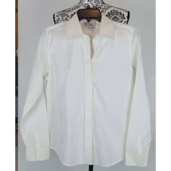 Lilly Pulitzer Women’s Beige Button Up Shirt Size 8 Long Sleeve 100% Cotton Blou