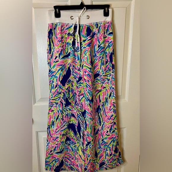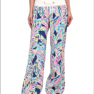 Lilly Pulitzer Women's Blue Beach drawstring floral tropical resortwear Pants
