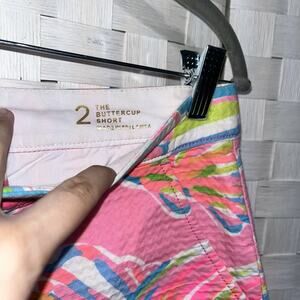 Get ready for a tropical getaway with these beautiful Lilly Pulitzer Buttercup Floral Shorts! The vibrant multicolor floral pattern will make you stand out in any crowd, whether you're at the beach, walking around town, or attending a party or cocktail event. The scalloped accents add a touch of elegance and sophistication to these shorts, which are made with a comfortable blend of spandex and cotton.