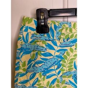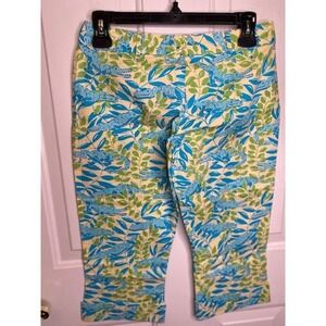 Lilly Pulitzer Womens Capri Pants Green Blue Alligator Print Cropped Size 0