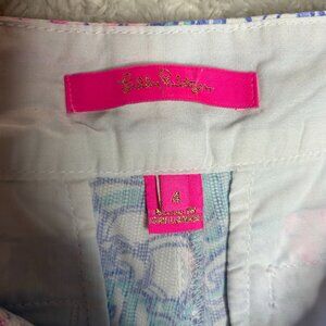 Lilly Pulitzer Women's Chipper Shorts Size 4 Raising Shell Pink Blue Seashells Preppy Beach. Garment is in very nice overall condition. Looks new or rarely and lightly worn. No rips, no stains, no snags, no pilling, no sacking out of the fabric (or elastic or leather) Noted. Open to reasonable offers.