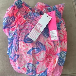 Dazzle in our Dezi Off-the-Shoulder Maxi Dress, which pairs a breezy boho silhouette with a classic Lilly print. This easy-fit style in cotton lawn features a smocked neckline, short flutter sleeves, and a tiered, ankle-length skirt.