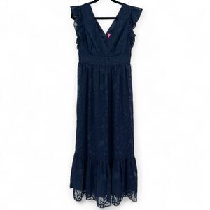 Lilly Pulitzer Women's Dress Size 2 Navy Autumn Botanical Floral V-Neck Ruffle Midi