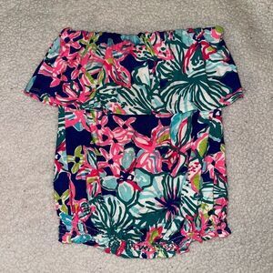 Lilly Pulitzer Womens Elastic Ruffle Tube Top Bright Floral Pattern Size Small