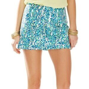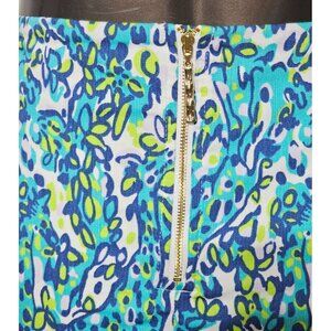 This Lilly Pulitzer skirt is a blend of elegance and tropical charm. Its vibrant animal print design in blue, green, and white channels a lively and refreshing aesthetic. Ideal for casual outings or vacation wear, this cotton blend fabric offers comfort and breathability. A versatile addition to your seasonal wardrobe.