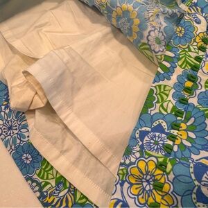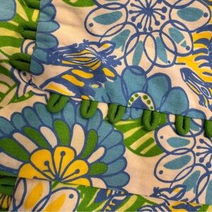 Excellent like new condition. Lily Pulitzer floral zip up skort. Green, yellow & blue, build in shorts, embroidered trim, split front, shell is 100% cotton lining is cotton spandex blend. Size 8. See photos for measurements.