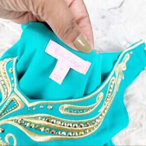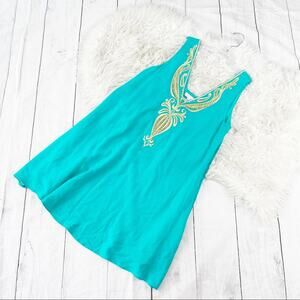 Lilly Pulitzer Women's Green Owen Trapeze Embroidered V-neck Dress Size Small