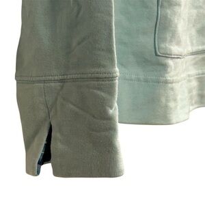 This Lilly Pulitzer women's pullover sweater in size medium features a relaxed fit and is crafted from a blend of cotton and spandex. It comes in a solid blue color with a button-up neckline and long sleeves. The sweater includes a front pocket and is suitable for casual occasions. Made in Vietnam, it is in excellent pre-owned condition.