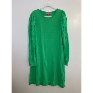 Lilly Pulitzer Womens Jasona Eyelet Long Sleeve Cabana Green Shift Dress Large