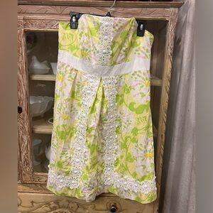 Lilly Pulitzer Womens Jubilee Strapless Dress Green Pink Beaded Floral Size 10