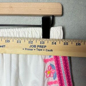 These Lilly Pulitzer Katia shorts feature a breezy white fabric with vibrant pink floral embroidery. Designed with a comfortable elastic waistband and relaxed fit—perfect for warm-weather style. Women’s size Small.