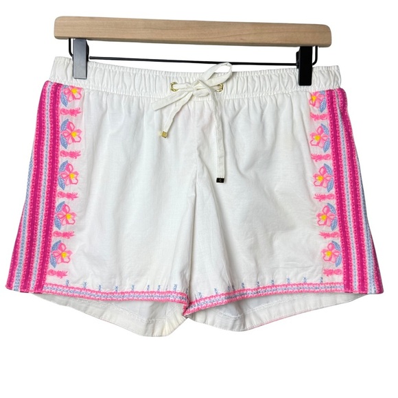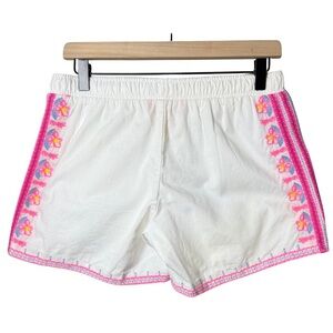 Lilly Pulitzer Womens Katia Pink Embroidered Flower White Shorts Elastic Waist S
