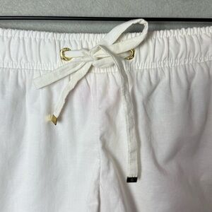 These Lilly Pulitzer Katia shorts feature a breezy white fabric with vibrant pink floral embroidery. Designed with a comfortable elastic waistband and relaxed fit—perfect for warm-weather style. Women’s size Small.