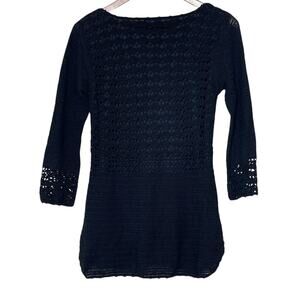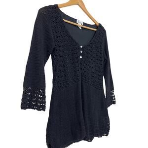 Lilly Pulitzer Women's M Black Crochet 3/4 Sleeve V Neck Whimsigoth Blouse Top