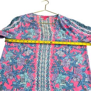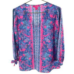 Lilly Pulitzer Women’s M Pamela 3/4 Sleeve Top Soleil Pink Paradise Elephant
