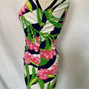 Lilly Pulitzer Women's Madison Dress Small Floral‎ Striped One Shoulder Ruched