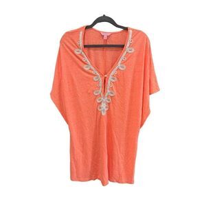 Lilly Pulitzer Womens Orange Keyhole Embroidered Cover Up Swimwear Size Small