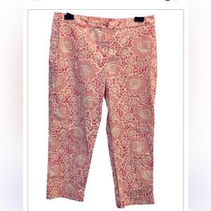 Lilly Pulitzer Women's Pants Pink White Floral Stretch Button Zip Closure Sz 12