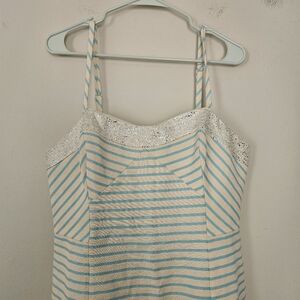 Lilly Pulitzer Remi mini dress. Removable straps. Blue/linen stripes. Silver hem. Back zipper. Lined.