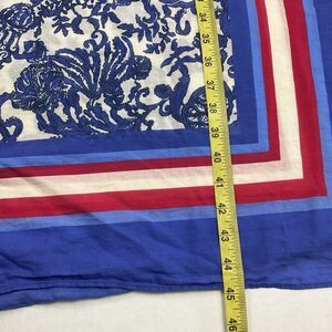 Vibrant Lilly Pulitzer sarong scarf, one size. Approx. 90 x 32, colorful blue, pink, and cream print with border trim. Has blemish on side corner (see photos).