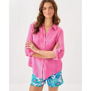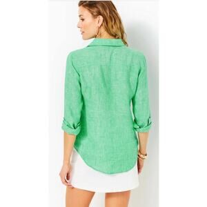 Lilly Pulitzer Womens Sea View Spearmint Linen Button Up Shirt XXL