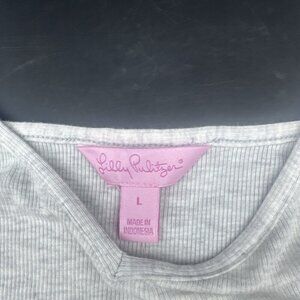 Lilly Pulitzer Women’s Seaspray Grey V Neck Adj Strap Ribbed Tank Top Sz L NEW
