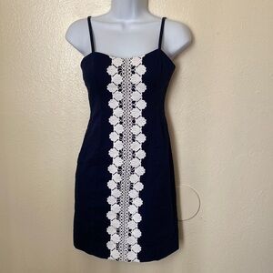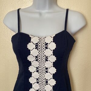 Lilly Pulitzer Women’s Shelli Navy White Lace Spaghetti Strap Mini Dress 00 / XS