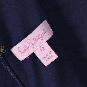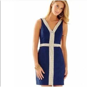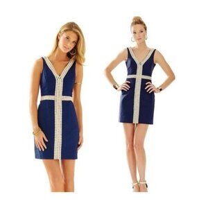 Lilly Pulitzer Women's Shift Dress Size 12 Navy Blue Bentley Gold Trim 12355