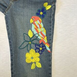 Lilly Pulitzer Women’s Size 8 Embroidered Jeans w Embroidered Parrots and Flower