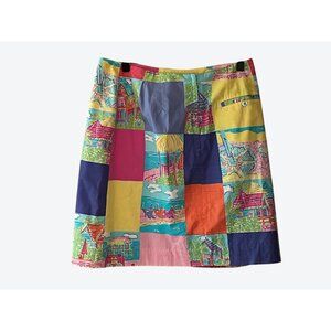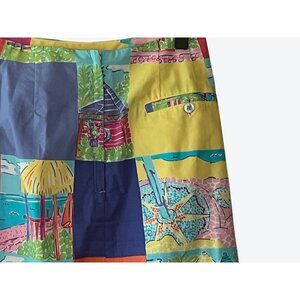 Lilly Pulitzer Women's Size 8 Unlined Colorblock Beach Scene Skirt Pink Yellow Orange Blue Green