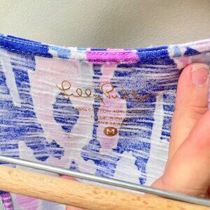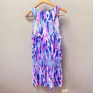 Lilly Pulitzer Women's Sleeveless Smocked Dress Size M Cotton & Modal Blue & Pin