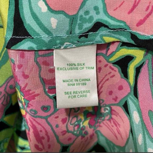 Lilly Pulitzer Women’s Small Elsa Silk Blouse Tropical Print Long Sleeve Top