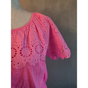 Lilly Pulitzer Women's Taylinn Dress. Size Medium. Hot Pink. Eyelet Yoke. Cotton. Elastic at Waist.