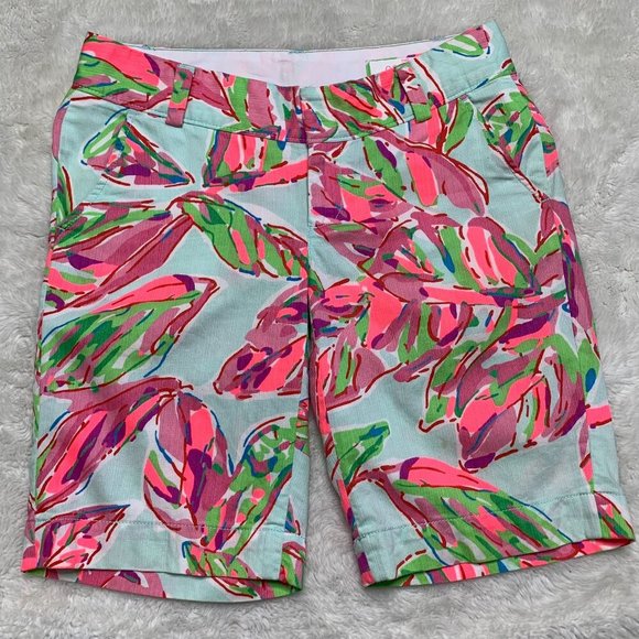 Pre-owned authentic Lilly Pulitzer Women's The Chipper Bermuda Shorts in The Vias Print Size 00. 100% Cotton. Aprox measurements: Rise is 6" inches. Waist laying flat is 13.5" inches. Inseam is 9.5" inches. Has some small marks. Please look at pictures for better reference. Let me know if you have any other questions. Happy Shopping! APR24. B8