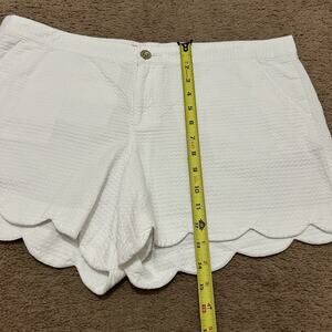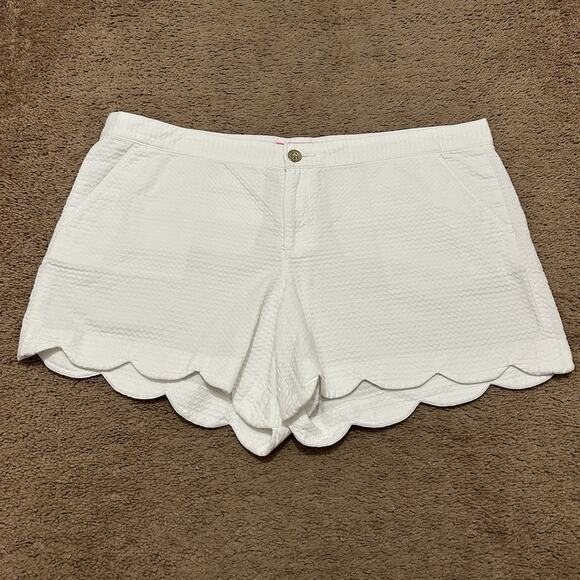Lilly Pulitzer Women's White Cotton Scalloped Cotton Shorts, Resorts, Size 16. Condition is Pre-owned - Excellent. Shipped with USPS Ground Advantage.