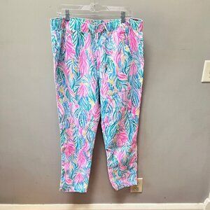 Lilly Pulitzer Women's XL Multicolor Linen Pants With Drawstring & Pockets
