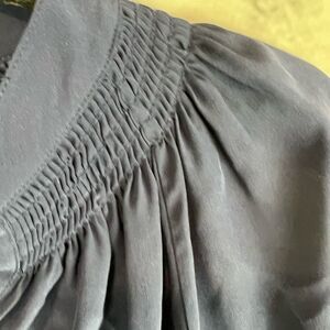 Keywords: Lilly Pulitzer, multicolor blouse, silk blouse, women's fashion, smocked neckline, elastic cuffs, colorblock pattern, long sleeve, size XS, casual wear, formal wear, pre-owned.