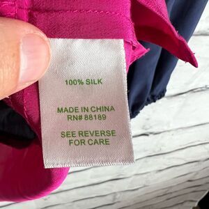 Lilly Pulitzer Women's XS Colorblock Silk Blouse Navy/Pink Long Sleeve