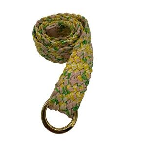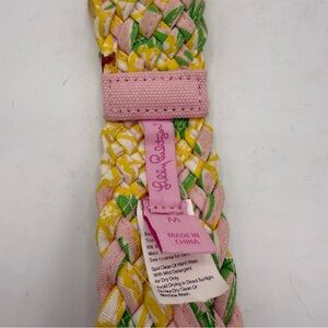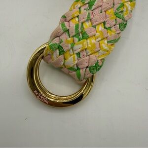 Lilly Pulitzer Woven Belt Braid Gold D Ring Cotton Size Medium Pink Green. Fabric. 42” total length. Very good preowned condition.