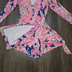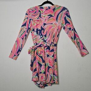 Lilly Pulitzer Wrap Romper Long Sleeve V-Neck Tie Belt Tropical Floral Print S