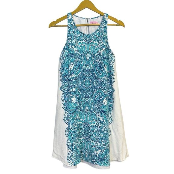 Lilly Pulitzer Wright Trapeze Tank Mini Dress Size S Turquoise White Tipsy Tusks