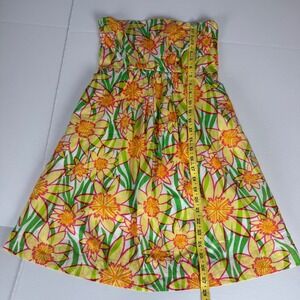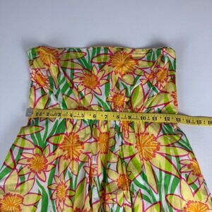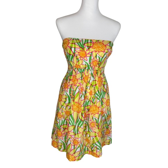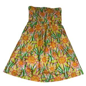 Lilly Pulitzer Wyatt Strapless Cotton Sun Dress Yellow Green Daffodils Size 0