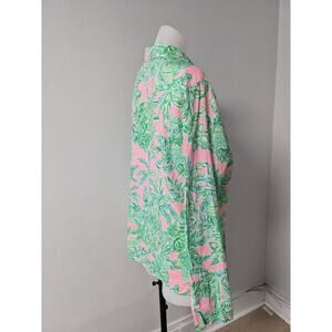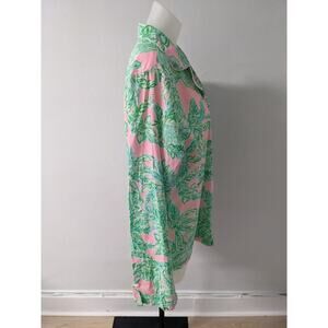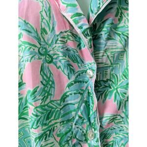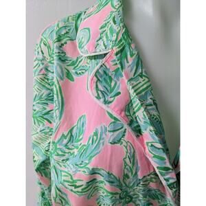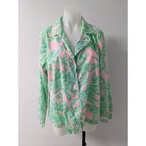 Lilly Pulitzer XL Button Up Pajama Top Green Pink Cotton Botanical Long Sleeves