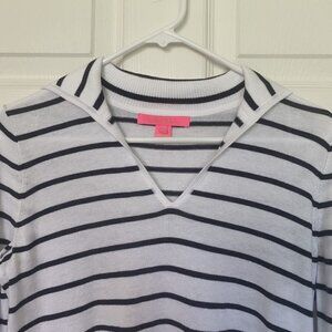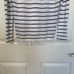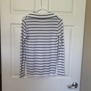 Lilly Pulitzer XS Crestwood Sweater Resort White Navy Maritime Stripe Fringe.