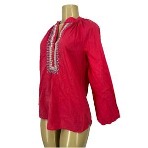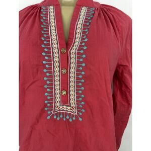 Lilly Pulitzer XS Embroidered Elsa Cotton Long Sleeve Blouse Top Henley Q8v