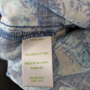 The Lilly Pulitzer XS Florita Linen Pant in Deep Indigo Elephants Blue White is a stylish and comfortable choice for women. With a playful elephant pattern and a relaxed fit, these wide-leg pants are perfect for summer, fall, and spring. Made from linen material, they are easy to care for with machine washable instructions. The pull-on closure and flat front add to the simplicity and convenience of this vintage-inspired piece, making it a versatile option for various beach, tropical, and preppy looks.
