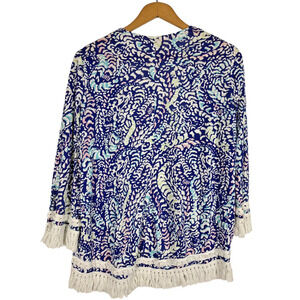 Lilly Pulitzer XS Gigi Cardigan Knit Wrap & Tank Top Shell Blue Paisley Print