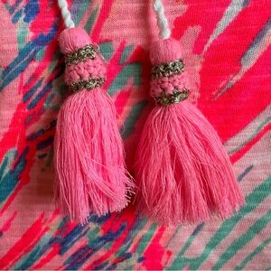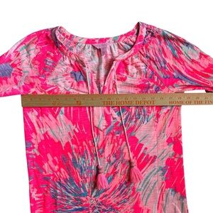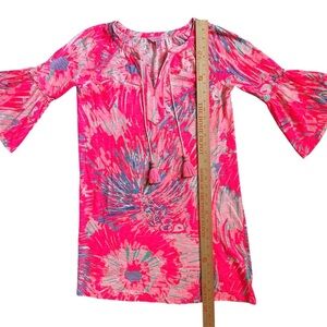 Lilly Pulitzer XS Pink Blue Tie-Dye Bell Sleeve Dress Tassel Neck Boho Resort
