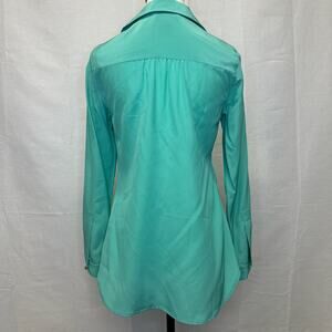 Lilly Pulitzer XS Teal Silk Blouse - 100% Silk with Green Gemstone Buttons